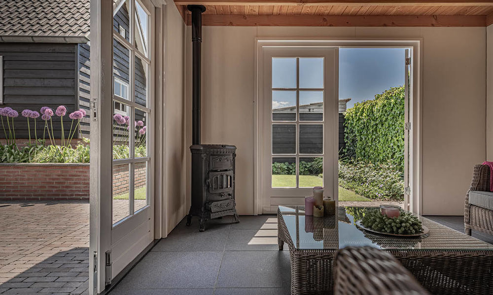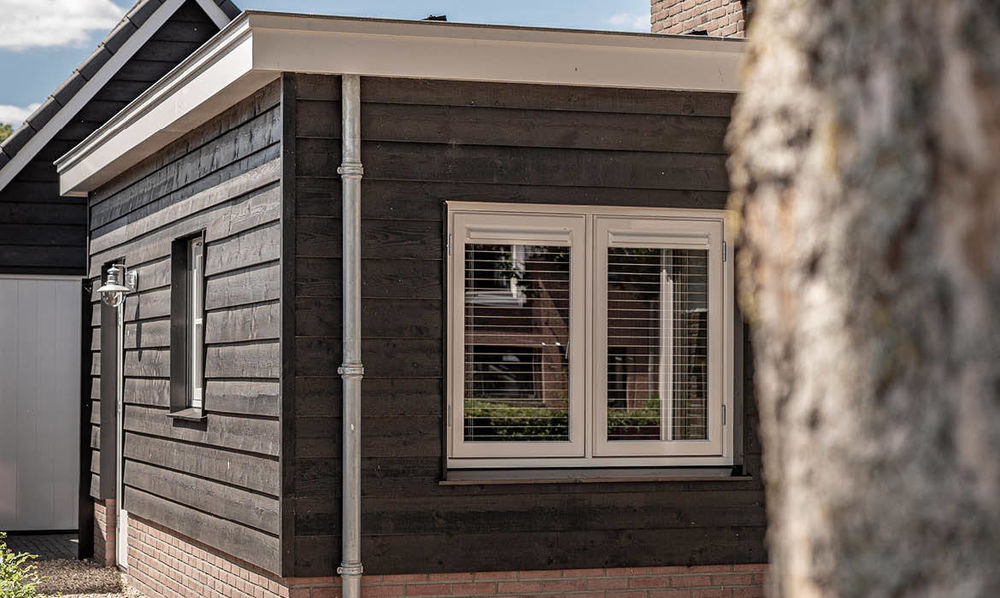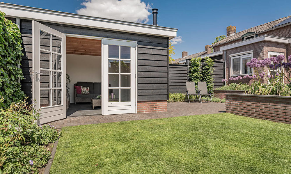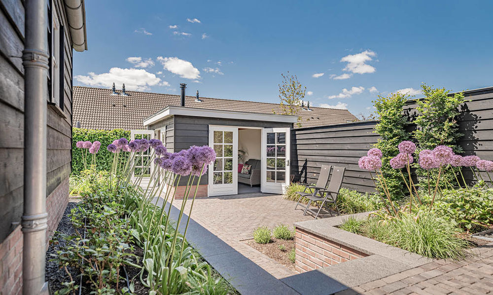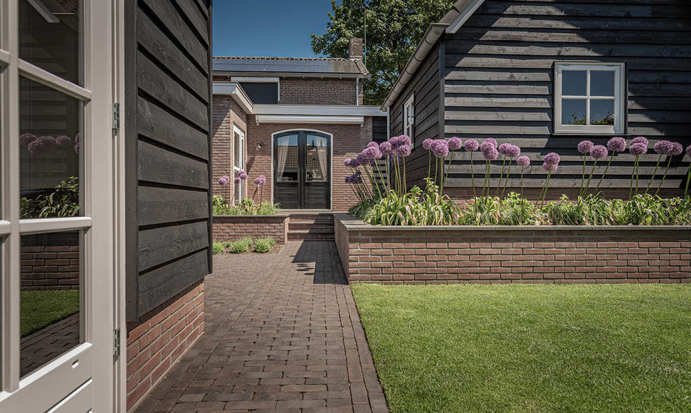 In Uddel hebben we deze nieuwe schuur en veranda gerealiseerd. De stijl van zowel de schuur als de veranda sluit naadloos aan bij de stijl van de woning en de eerder gerealiseerde verbouwing. Ook de gemetselde tuinmuren zijn door ons verzorgd.